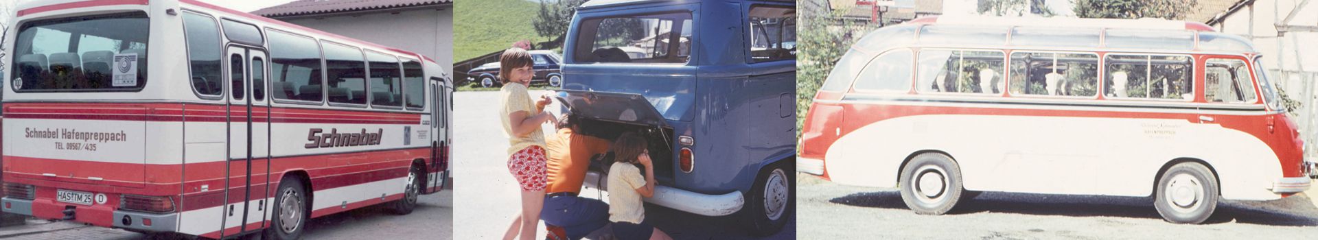 Jeder Mensch ist seines Glückes Schmied: Vom „Bäckerlehrling“ zum „Busunternehmer“ Ich bin am 23.12.1935 in Hafenpreppach als Sohn von Magarete und Karl Schnabel geboren. Von 1942 bis 1950 besuchte ich die Volksschule in Hafenpreppach. Am 01.08.1950 begann ich eine Lehrlingsausbildung im Bäckerhandwerk bei der Bäckerei Wilhelm in Maroldsweisach. Da der Beruf des Bäckergesellen nicht unbedingt die berufliche Erfüllung war, machte ich mich auf die Suche nach einer anderen Beschäftigung. Das Fuhr- und Transportgewerbe hat mich in der damaligen Zeit in besonderer Weise fasziniert. So war es dann nicht verwunderlich das es mich zu diesem Zweig hinzog. Ich erwarb im Frühjahr 1955 den Führerschein der Klasse 2 und bereits wenige Tage danach nahm ich eine Tätigkeit als Kraftfahrer beim Milchhof in Coburg an.